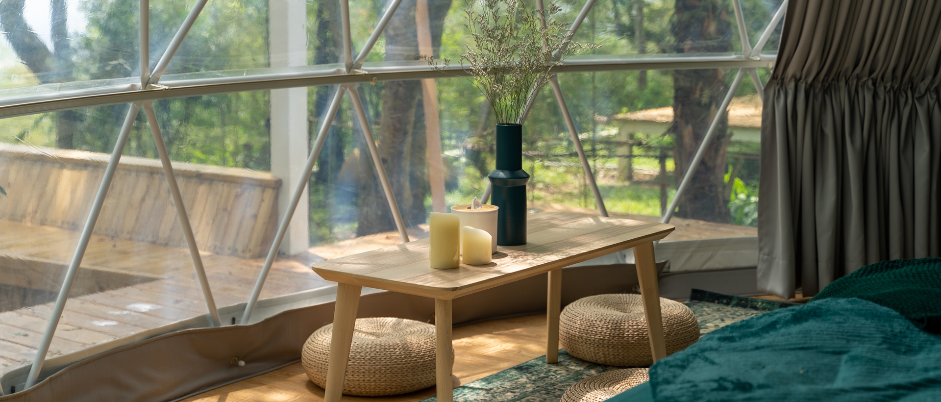 We hand-picked Hygge style woven bedding, table, chairs and other furniture, providing complete amenities and comfortable space for our valued guests. Come with simple clothes and experience camping without any hustle.
