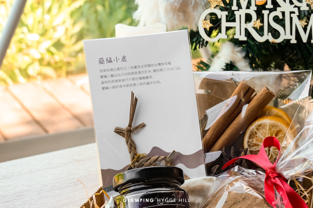 Glamping Hygge Hill 山野森活 為每一位旅客,在「 聖誕禮物所 」準備了驚喜環節,於晚宴時管家會送上「 聖誕禮物兌換卷 」,用餐後可以持卷到Hygge Bar,從可愛的聖誕襪中抽取一份專屬的聖誕禮物,每一件驚喜選物,都充滿 Glamping Hygge Hill 山野森活 的特色與心意,將這份 Hygge 暖意延續到您的日常生活中: