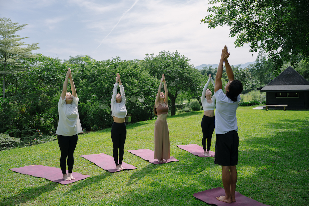 晨光中,空氣滿是草木氣息,在山林間鋪開瑜伽墊,隨著蟲鳴與風聲慢慢伸展,喚醒沉睡的身體與感官,每一個動作,都是與自然的對話。這是一場與自然共舞的儀式,讓每一次深呼吸,都是對生活的溫柔回應。