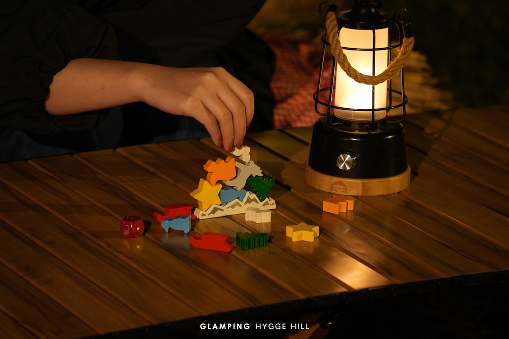 聖誕節最美好的靈魂,藏在那些不經意的歡笑與互動裡, Glamping Hygge Hill 山野森活也為賓客們準備了「 聖誕互動小遊戲 」,刺激的聖誕限定桌遊、有趣可愛的山野小鹿套圈圈,以及充滿挑戰的玉米洞(Cornhole),讓靜謐的山野瞬間充滿活潑的生命力。